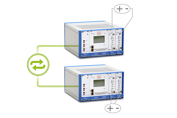 For larger setups, several controllers can be synchronized externally. This means that more than 8 sensors can be operated in parallel without the sensors influencing each other. This ensures stable and consistently precise measurement values, even in complex multi-channel applications.
