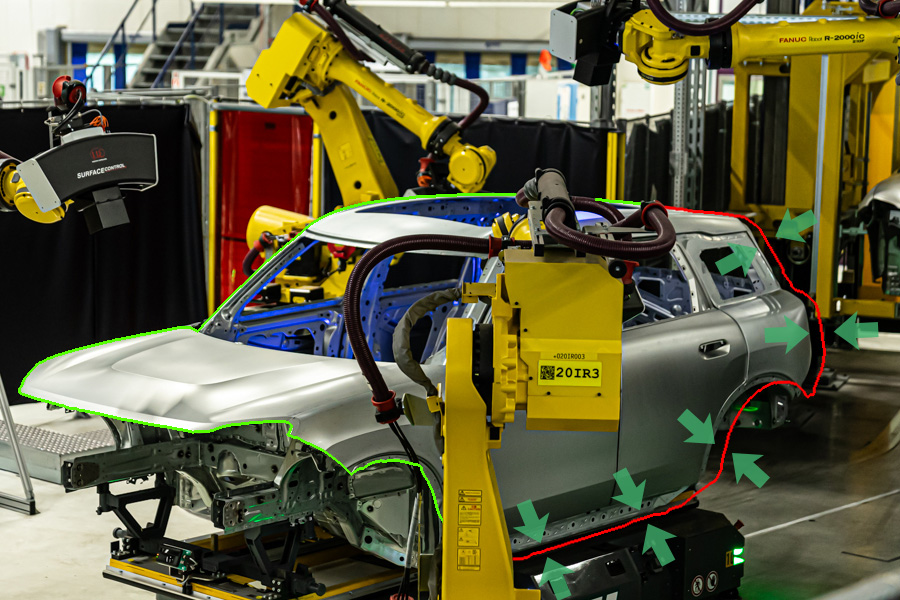 The surfaceCONTROL measuring systems are equipped with an integrated 6D offset compensation that automatically corrects positional or orientation deviations of the car body. This enables fast, precise and highly repeatable measurements, even when slight misalignments are present.